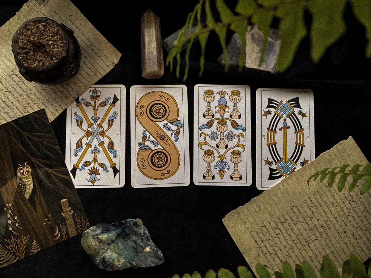 Пентакли. Масть Пентаклей представляет стихию Земли. Она соответствует материальному и физическому миру. Земля — это земной, стабильный и практичный символ, затрагивающий темы денег, работы, здоровья и ресурсов. Эта масть связана с устойчивыми результатами и тем, как мы взаимодействуем с физическим миром, с нашими владениями, ресурсами и телом.